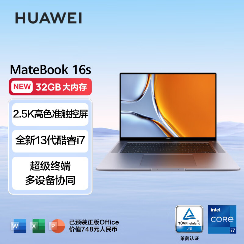 华为MateBook 16s 笔记本电脑 13代酷睿标压处理器/2.5K高色准触控屏/16英寸轻薄办公本 i7 32G 1T 深空灰价格:8399.00元!