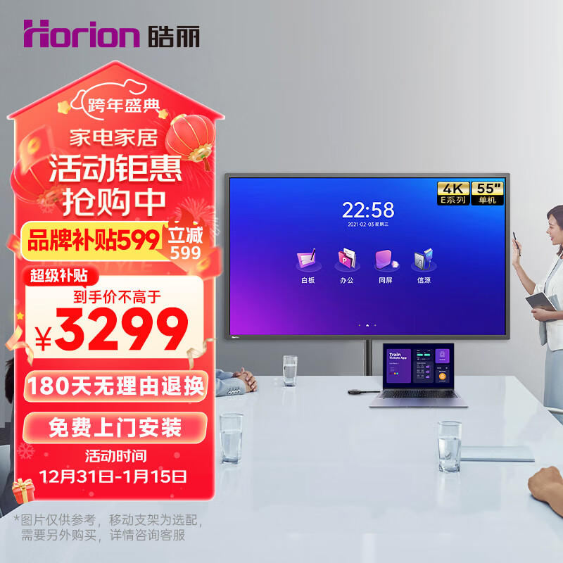 皓丽(Horion)智能视频会议平板电视投屏电视55英寸电子白板教学办公一体机4K商业显示触摸智慧大屏电视价格:3899.00元!