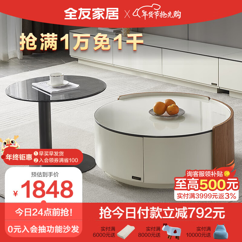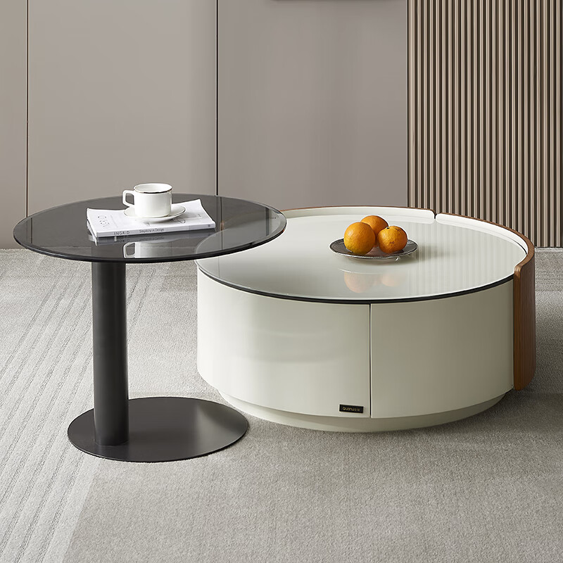 全友家居 茶几组合现代风钢化玻璃茶桌套装客厅圆形置物小桌子DW1130价格:2640.00元!