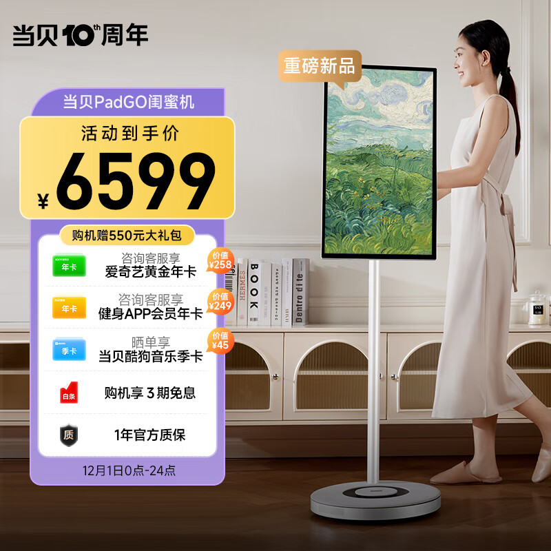 当贝PadGO 闺蜜机4K旗舰版 智能平板 随心屏 移动智能屏 27英寸超大屏触控旋转 8+512G DBPADGO1S价格:6599.00元!