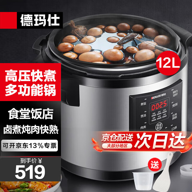 德玛仕商用电锅 电高压锅大容量12L升多功能单位企业食堂饭店高电饭煲锅15-20人用YBD12-135价格:519.00元!