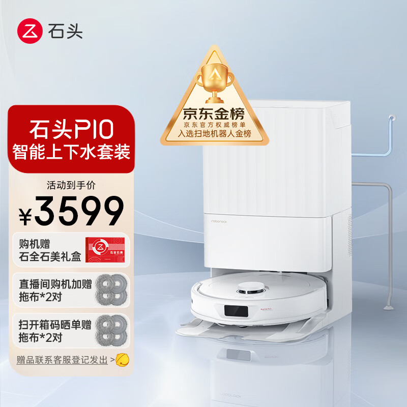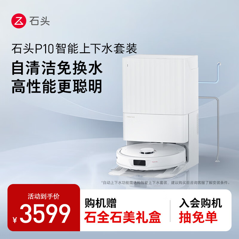石头(roborock)扫地机器人扫拖一体 石头P10自动上下水扫拖洗烘一体机擦地机 自动清洗集尘烘干补水价格:3599.00元!