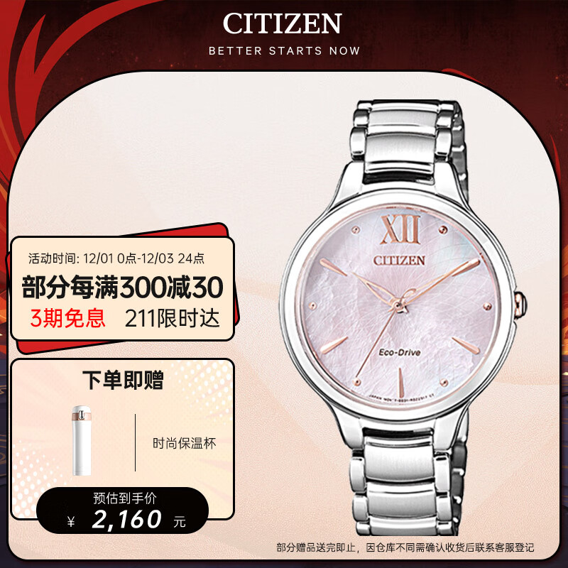西铁城(CITIZEN)手表女日韩表L系列光动能贝母盘钢带时尚礼物EM0558-81Y价格:2490.00元!