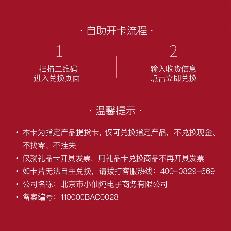 商品名称:小仙炖鲜炖燕窝小鲜瓶尊享年卡40g*240瓶