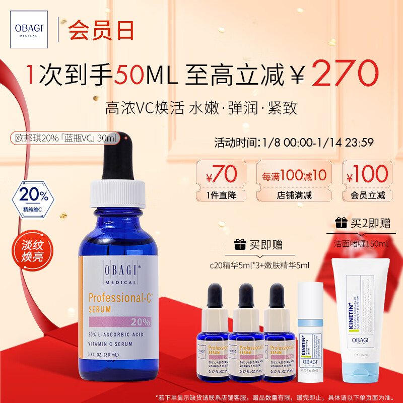 欧邦琪(Obagi)维C臻萃焕活精华左旋VC 20% 30ml紧致抗皱提亮补水护肤品新年礼物价格:1130.00元!