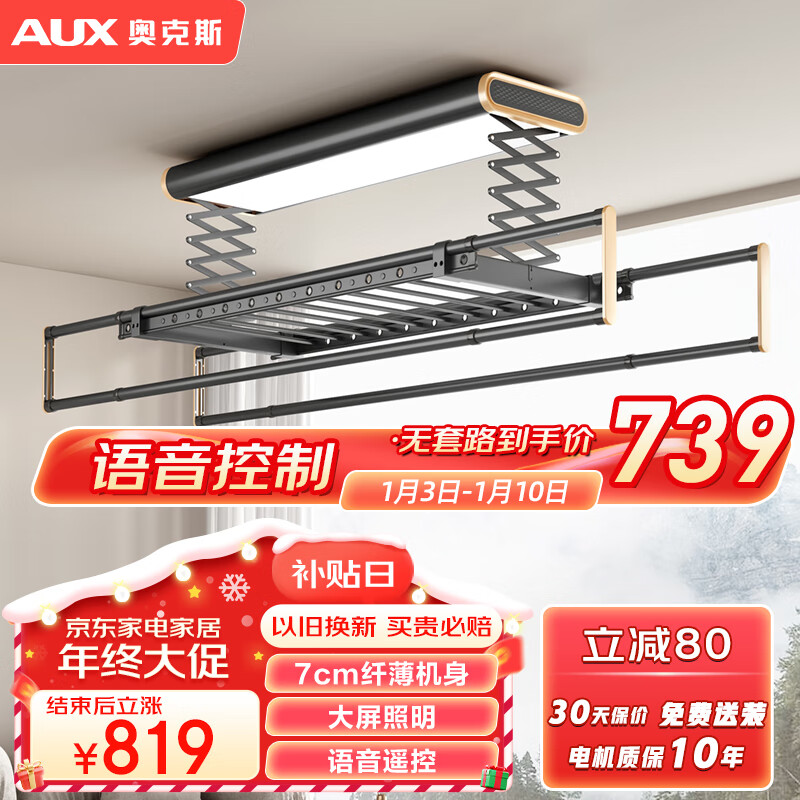 奥克斯(AUX)电动晾衣架升级款智能自动升降杆阳台室外无线语音遥控LED照明灰价格:819.00元!