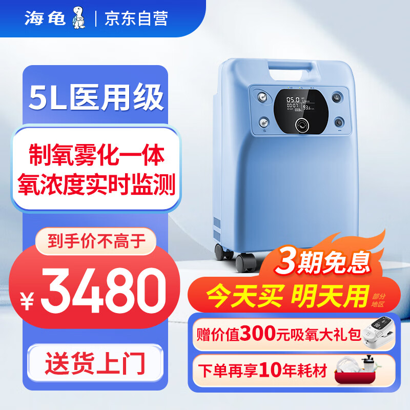 海龟制氧机VH5系列5升吸氧机大流量家用5L氧气机氧浓度实时显示老人孕妇家用医用级带雾化旗舰款VH5-N价格:4680.00元!