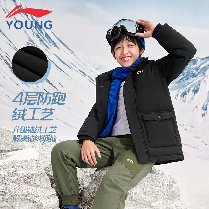 李宁YS李宁童装儿童羽绒服男小大童85%鸭绒连帽按扣口袋工装羽绒服价格:568.00元!