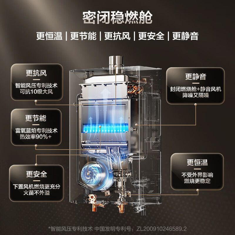 4、这款燃气热水器真的是好,颜值在线,使用也挺好的,尺寸也刚刚好,热水挺快的,声音也很小呢,我非常喜欢,使用也方便,值得购买