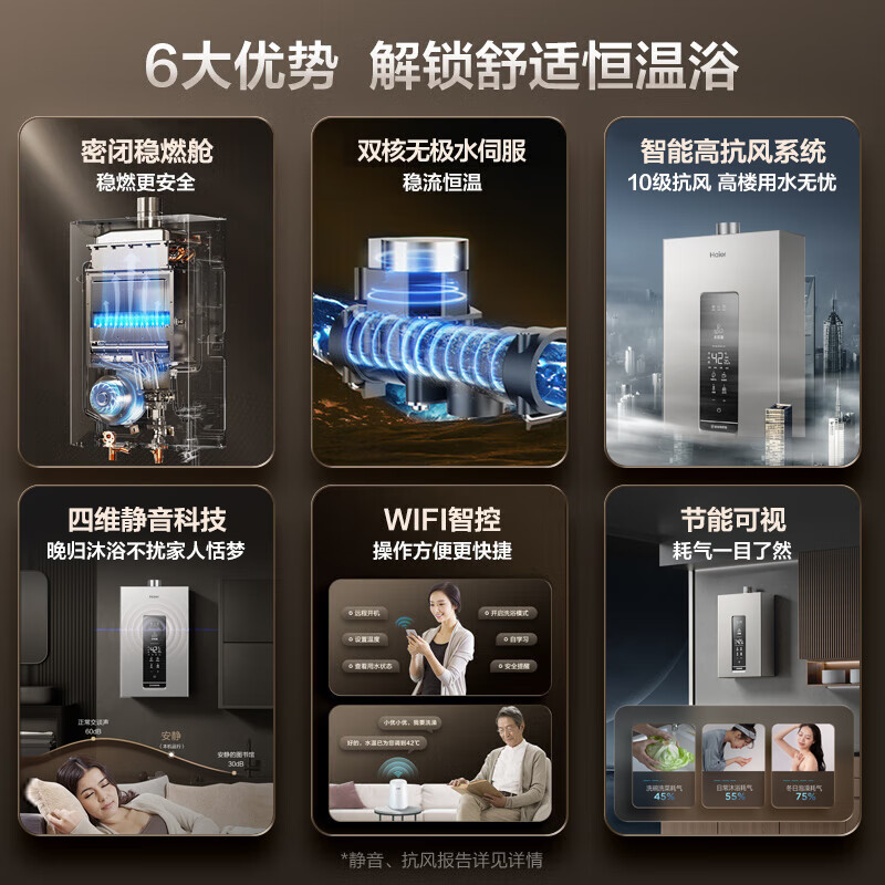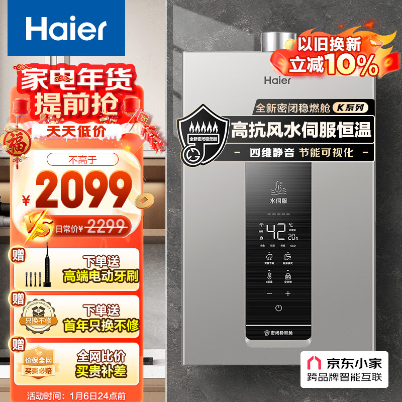 海尔(Haier)K系列 16升家用燃气热水器天然气 双核无极水伺服 一级静音 全新密闭稳燃舱高层适用JSQ31-16KL3U1价格:2199.00元!