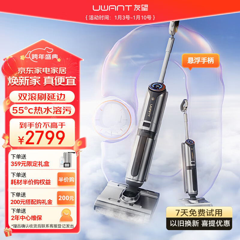 uwant友望洗地机家用 吸洗拖一体机拖地机擦地机吸尘 双滚刷热水洗地机 悬浮手柄助力X200价格:2779.00元!
