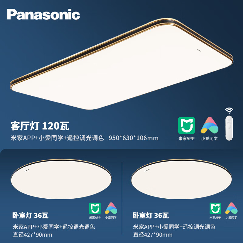 松下(Panasonic)吸顶灯 米家智能客厅灯APP调光调色LED照明灯具 二室一厅价格:1699.00元!