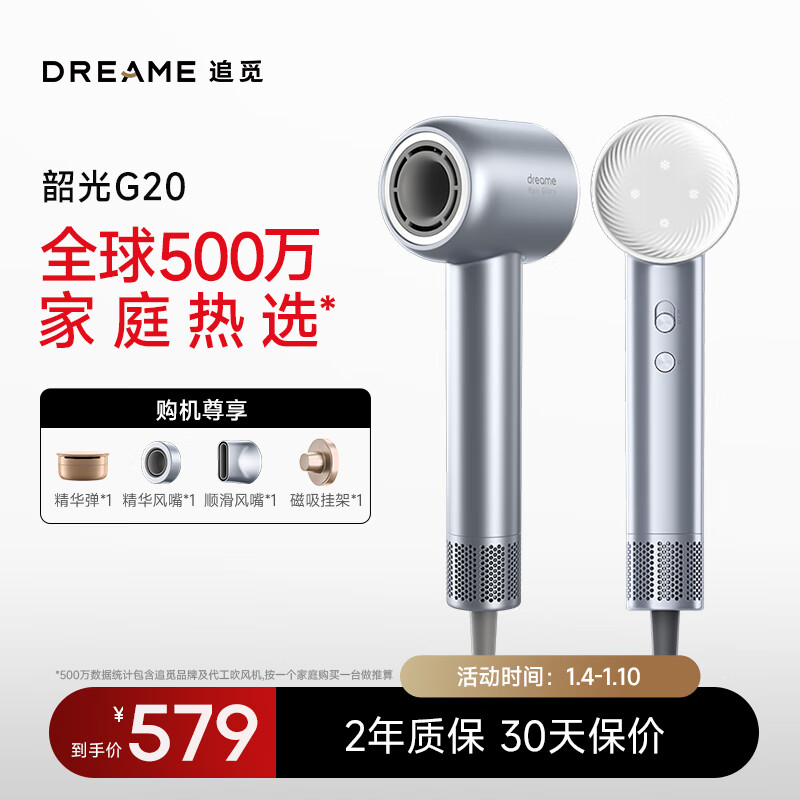 追觅韶光G20高速吹风机家用大功率负离子快速干发吹风筒 精华弹护发润发电吹风新年情人节礼物 晴山蓝价格:959.00元!