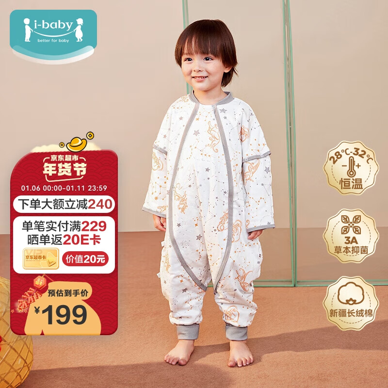 i-baby恒温婴儿睡袋秋冬宝宝分腿睡衣满月礼物礼盒装舒适威动四方110价格:439.00元!