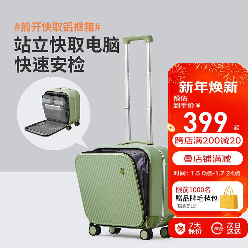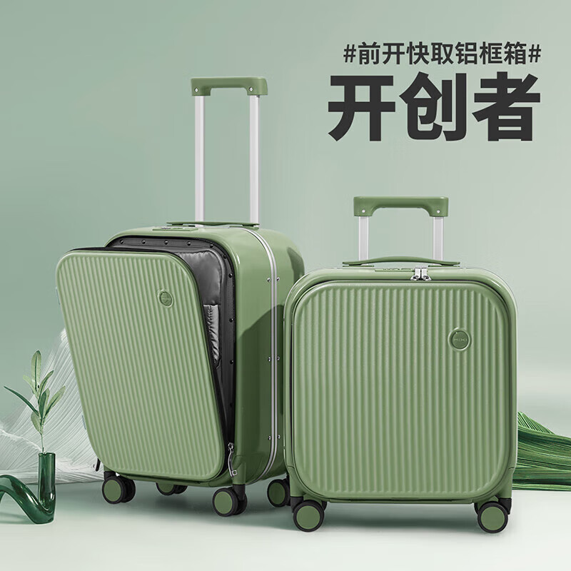 米熙前开盖铝框箱拉杆箱女行李箱男万向轮密码登机箱18英寸牛油果绿70价格:599.00元!