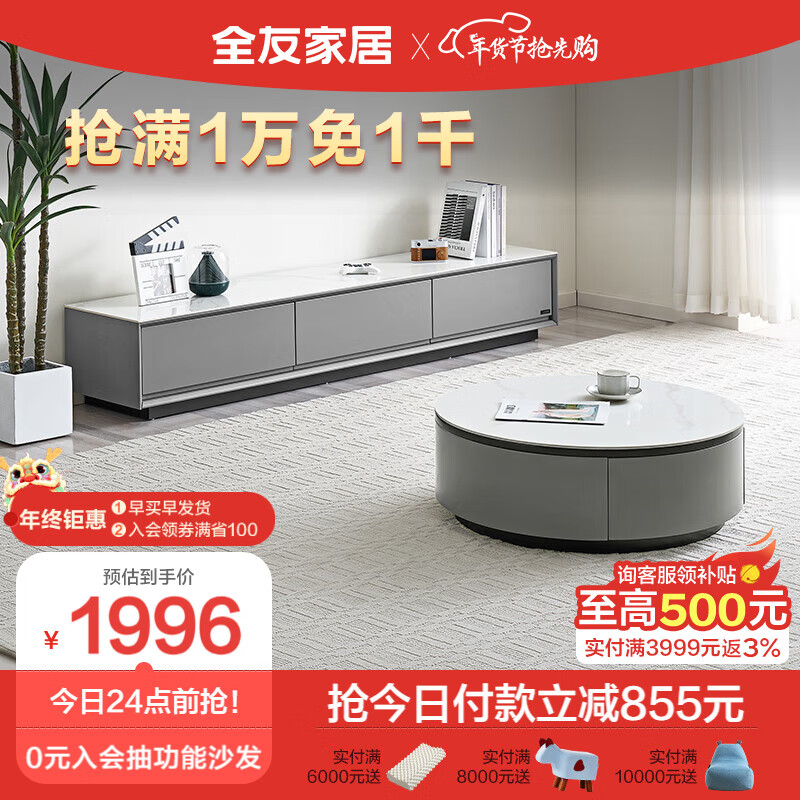 全友家居 岩板茶几电视柜组合现代简约客厅家用圆形茶几边几DW1055B价格:2851.43元!