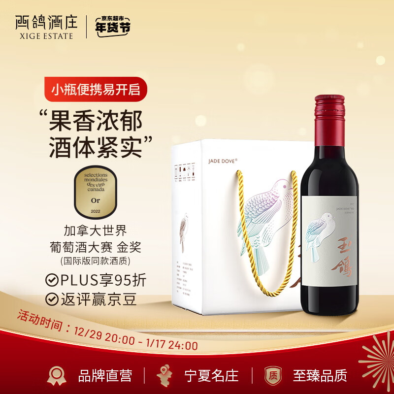 西鸽酒庄玉鸽宋韵干红葡萄酒187ml*6瓶整箱装 宁夏贺兰山国产红酒价格:285.00元!