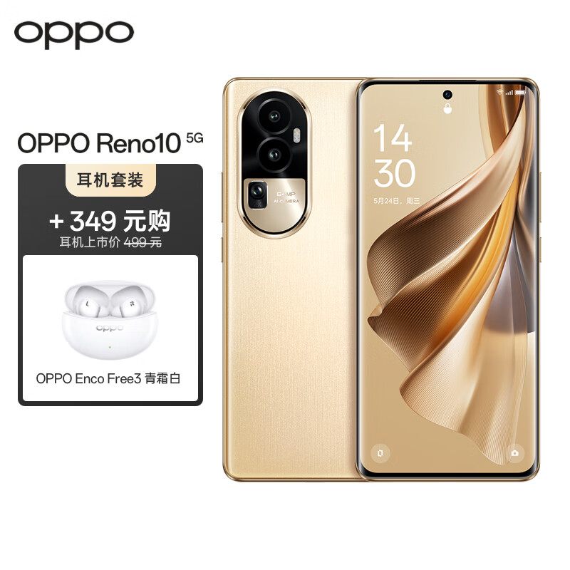 OPPO Reno10 12GB+256GB 大内存 灿烂金 6400万水光人像 超光影长焦镜头 5G手机【Enco Free3 青霜白套装】价格:2948.00元!