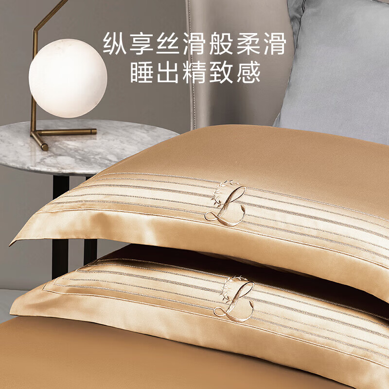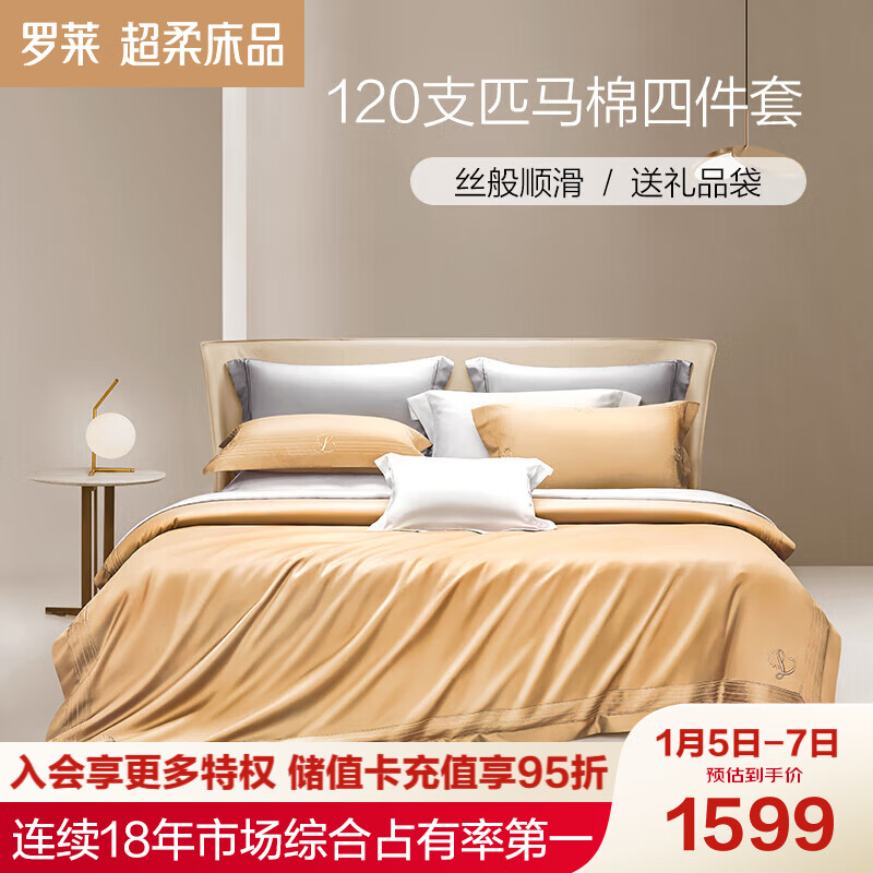 罗莱家纺 纯棉床上四件套床单被套床上用品120支匹马棉 金色200*230价格:2299.00元!