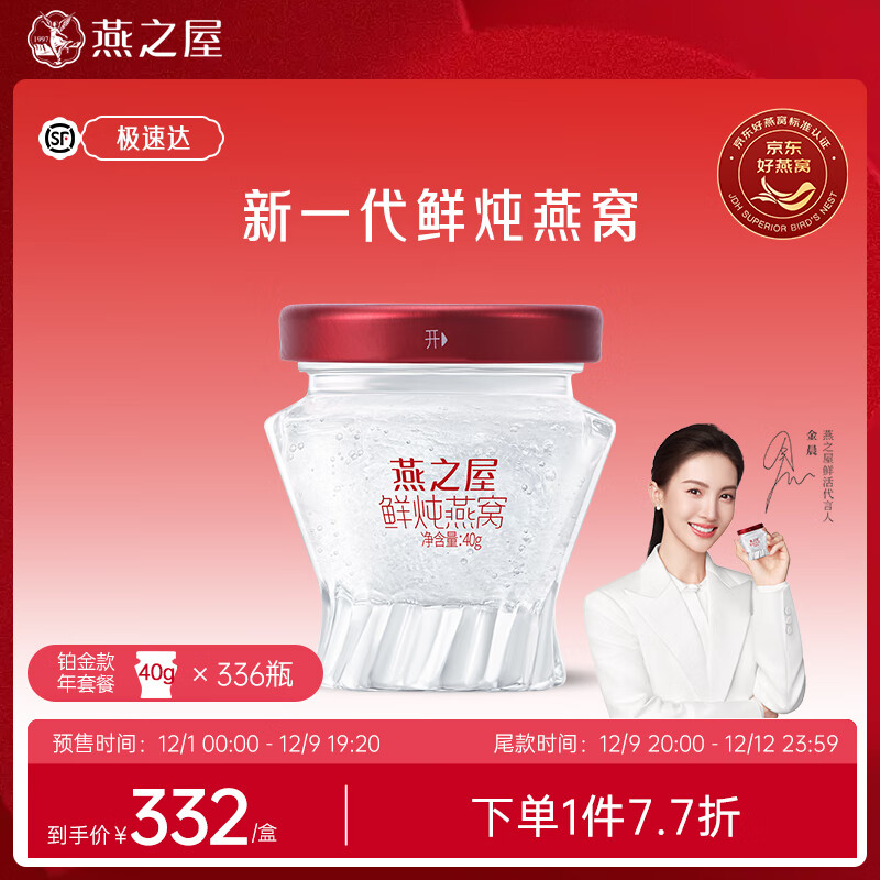 燕之屋·新一代鲜炖燕窝 铂金款 营养品孕妇滋补品【年套餐】40g×7瓶*48盒 冰糖燕窝价格:26926.00元!