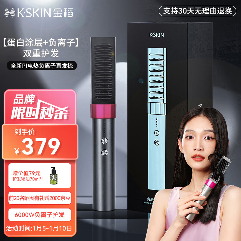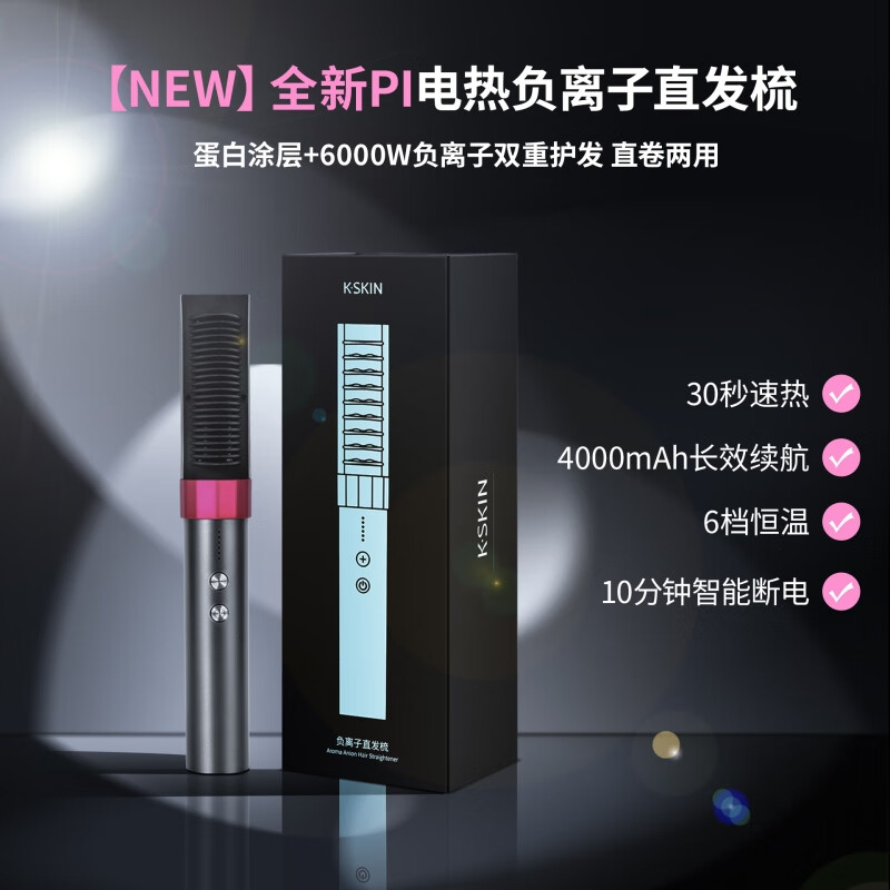 金稻直发梳无线负离子充电便携直板夹卷直两用六千万负离子护发卷发棒 KD382小紫梳 礼物女价格:619.00元!