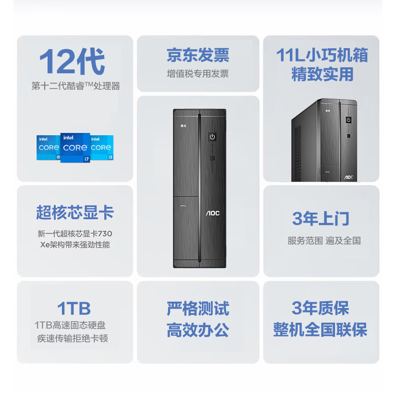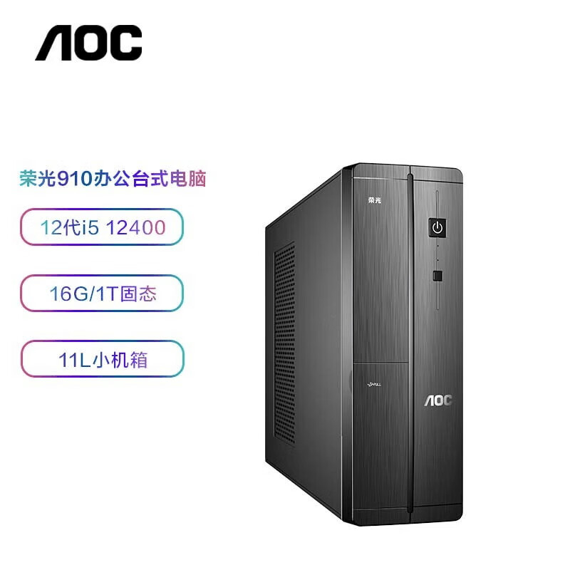 AOC 荣光910 高性能商用办公台式机电脑主机(12代i5-12400 16G 1TB SSD WIFI商务键鼠 三年上门)价格:2599.00元!