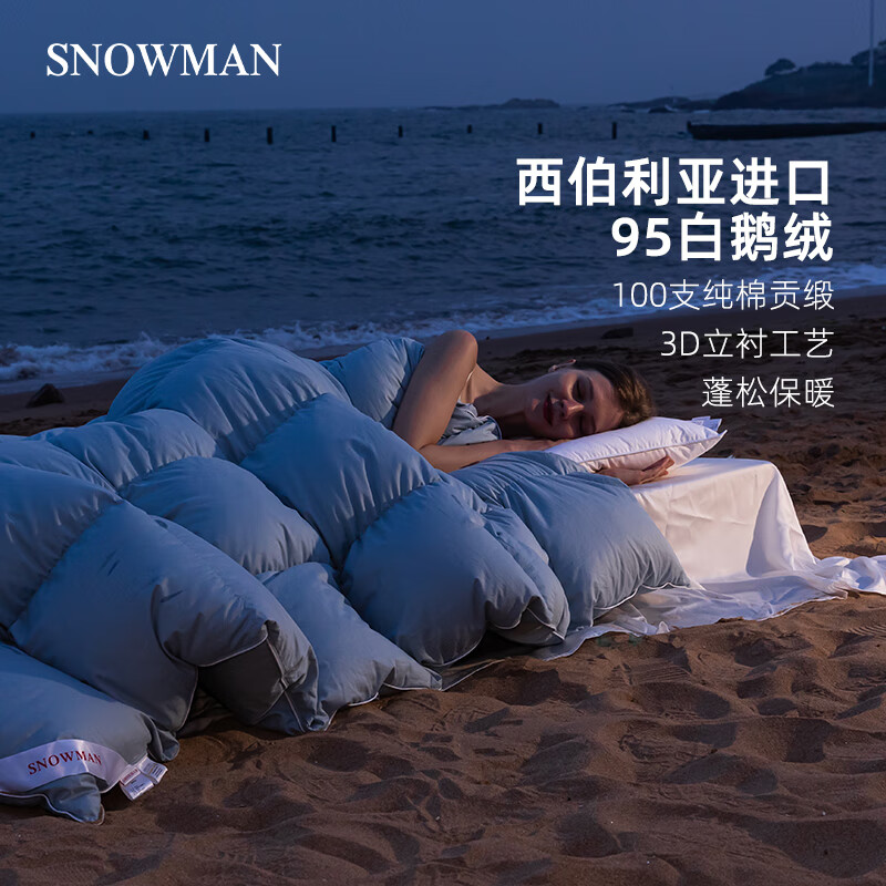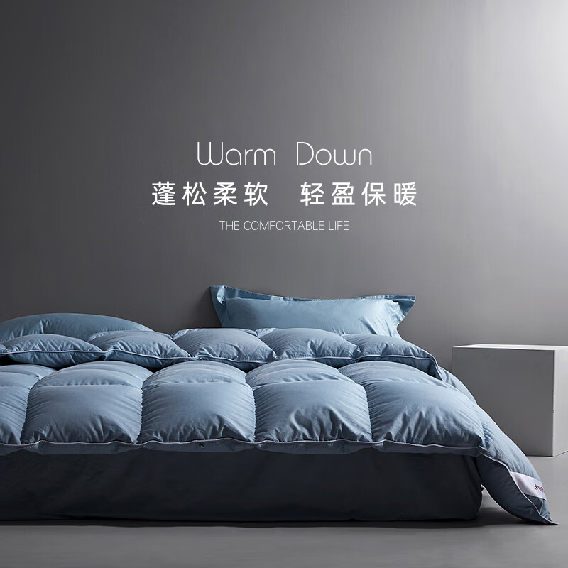 斯诺曼100支贡缎西伯利亚95%白鹅绒羽绒冬被 填充1100g180x220cm【蓝】价格:2299.00元!