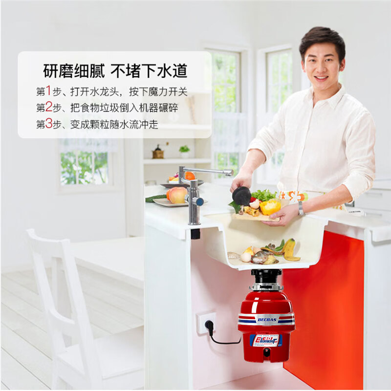 3、早听说厨余机可以提供很多便利,趁搞活动,果断下单。东西到货快,联系客服后很快安排了,是免费的****。我这里安装没有要变径等问题,很快就装好了。无线的遥控开关挺方便,可以慢慢感觉使用效果了。