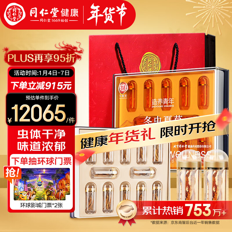 北京同仁堂【年货礼品】冬虫夏草-30/25g礼盒装 虫体饱满 洁净度高?可磨粉泡酒 滋补品送父母长辈送礼价格:12186.00元!
