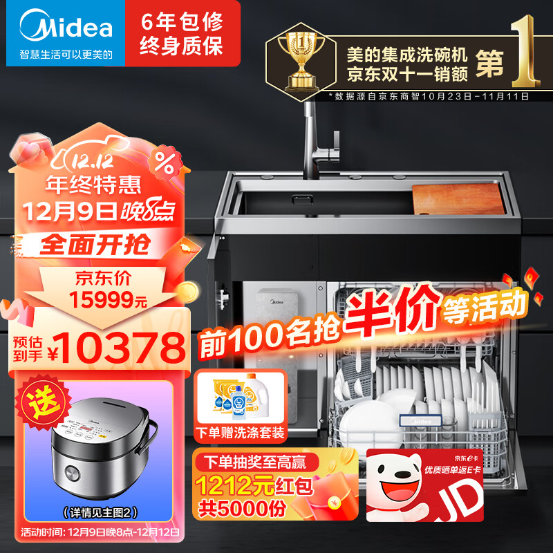 美的(Midea)集成水槽变频洗碗机集成洗碗机 集成洗碗机XH06搭配净水器白泽1200G Pro家用净水机价格:10699.00元!