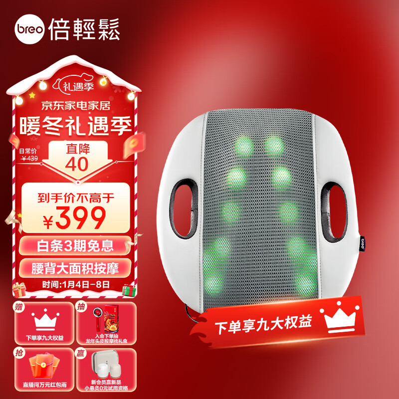 倍轻松(breo)腰部按摩器BM-312按摩垫靠垫 背部按摩器按摩仪 揉捏热敷 腰背按摩器 易烊千玺代言 新年生日礼物价格:429.00元!