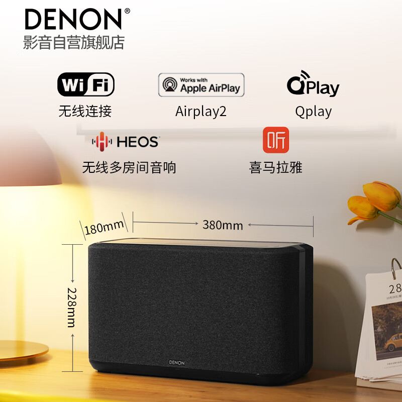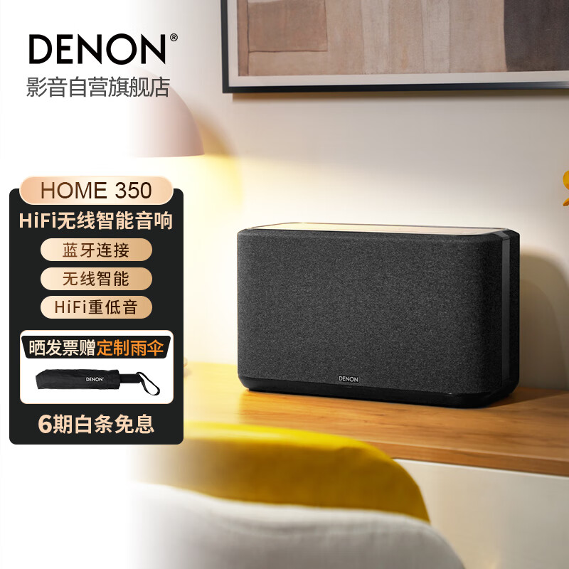 天龙(DENON) HOME 350 无线智能音响 HiFi音箱 WiFi蓝牙USB立体声配对Aux及多房间音乐组合音箱黑色价格:4680.00元!