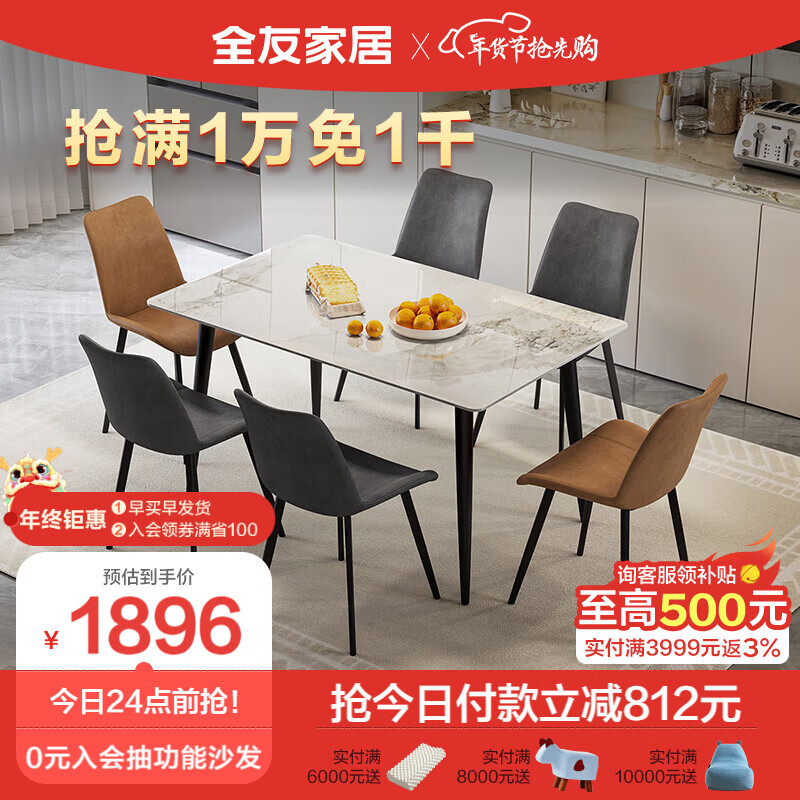 全友家居 现代简约双层台面岩板餐桌椅组合家用小户型饭桌子价格:2708.57元!