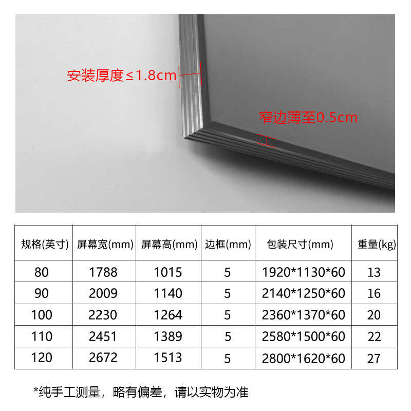 幕布尺寸:80英寸
