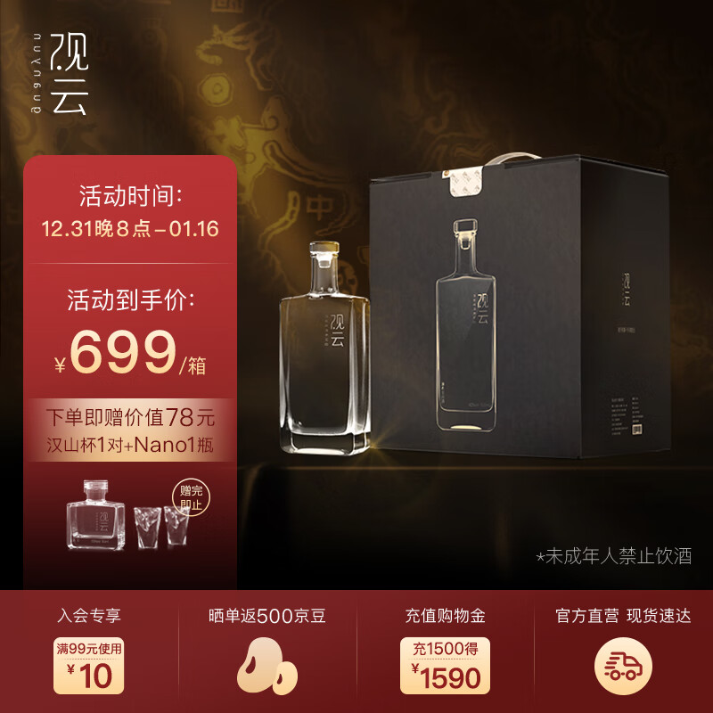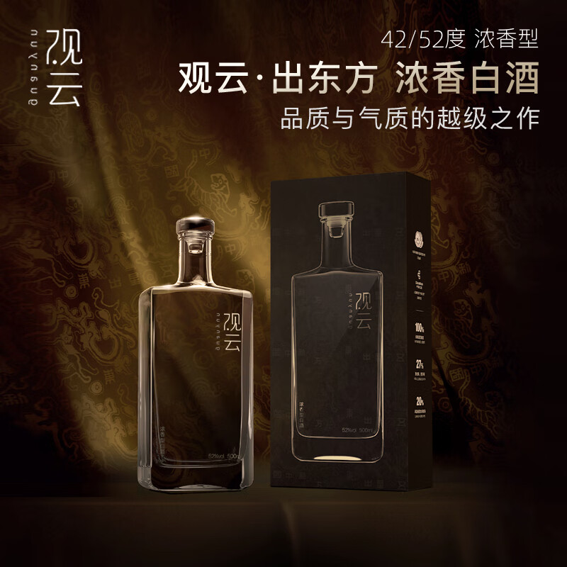 观云出东方 浓香型白酒 52度 500ml*4瓶 整箱装 内含礼袋【过年送礼】价格:699.00元!
