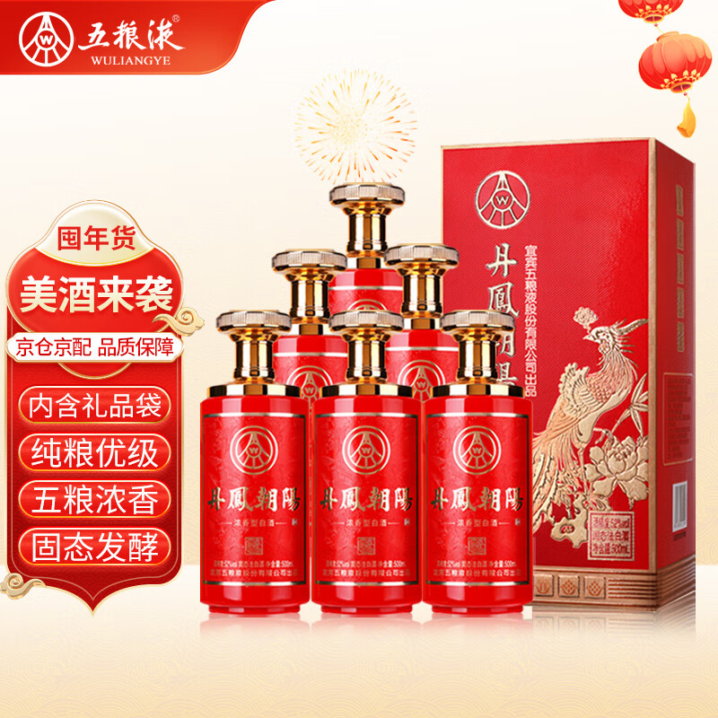 五粮液股份 丹凤朝阳凤来仪红 浓香型白酒52度500ml*6整箱装 内含礼品袋价格:364.00元!