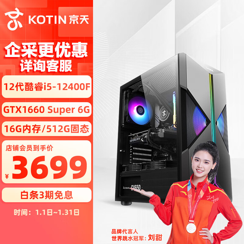 京天 Duel D68 i5-12400F/GTX1660S 6G/500G/16G/3年上门/吃鸡电竞游戏台式直播组装电脑整机DIY游戏主机UPC价格:3799.00元!