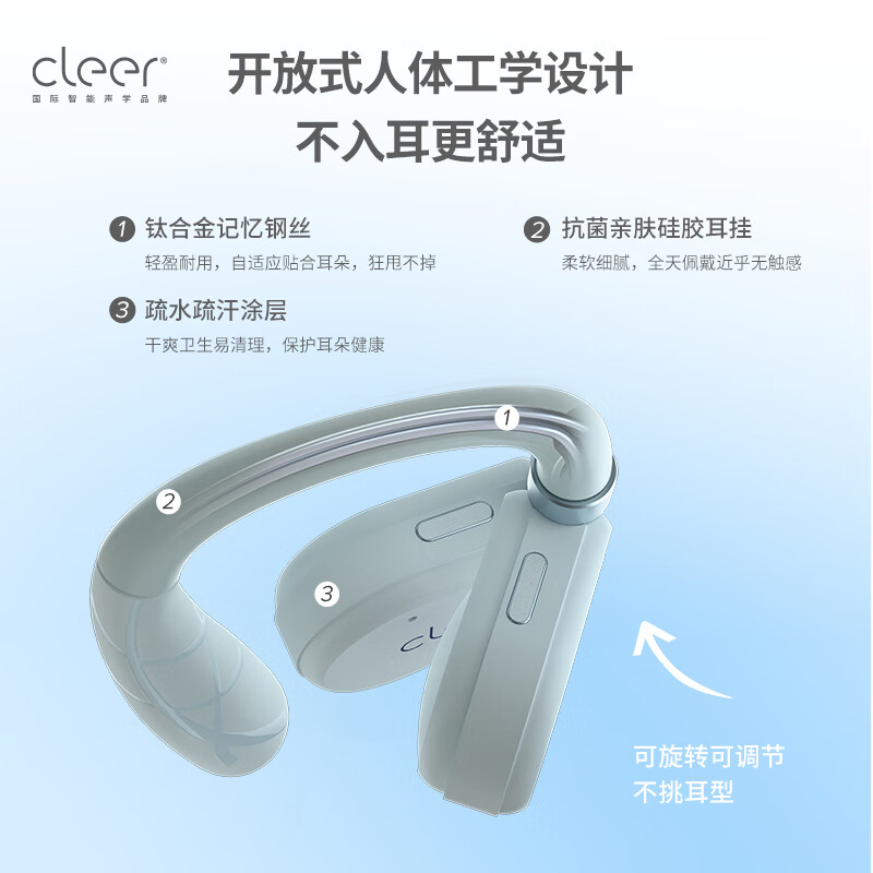 cleer【任贤齐代言】ARCII骨传导升级不入耳开放式挂耳式智能无线蓝牙耳机圣诞礼物 氧气蓝【运动版】价格:1399.00元!