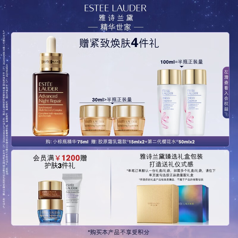 雅诗兰黛小棕瓶特润修护精华液75ml护肤品套装化妆品礼盒生日礼物送老婆价格:1220.00元!