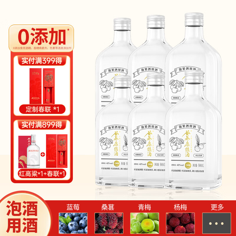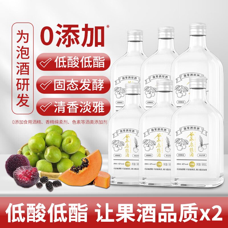 谷养康粮食酒 泡酒用酒瓶装清香高粱酒白酒泡果酒泡药酒纯粮酒 42度 500mL 6瓶 【质选】适合水果类价格:1247.00元!