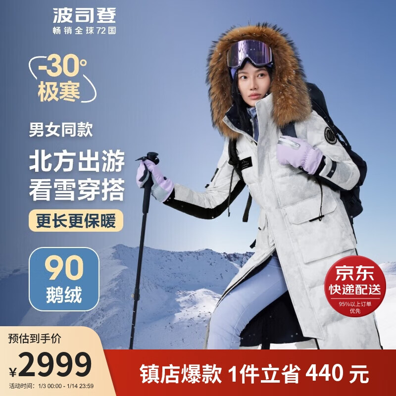 波司登(BOSIDENG)极寒2023谷爱凌同款鹅绒羽绒服男女款大毛领长款B30142300价格:3439.00元!