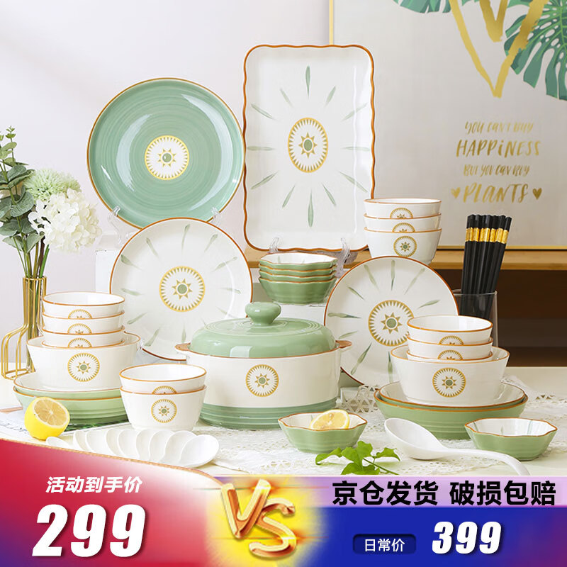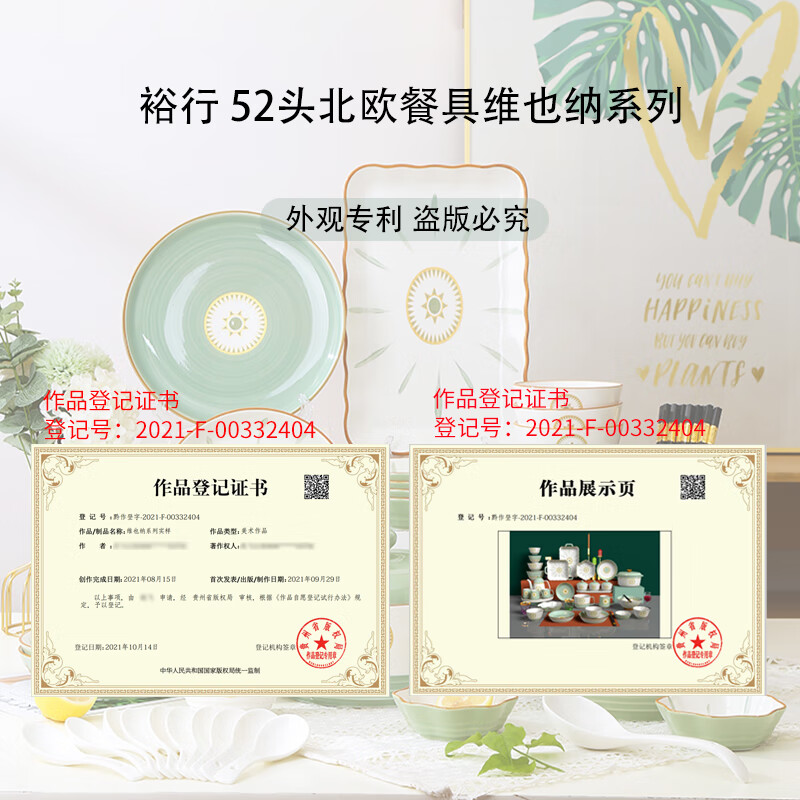 裕行北欧陶瓷餐具碗碟套装色釉套餐碗筷盘子乔迁送礼维也纳52头彩盒装价格:299.00元!