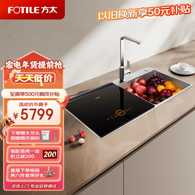 方太(FOTILE)水槽洗碗机家用 高能气泡洗 洗碗不弯腰 WiFi智控 超薄门板水槽一体嵌入式JPSD2T-02-C4JL.i价格:5799.00元!