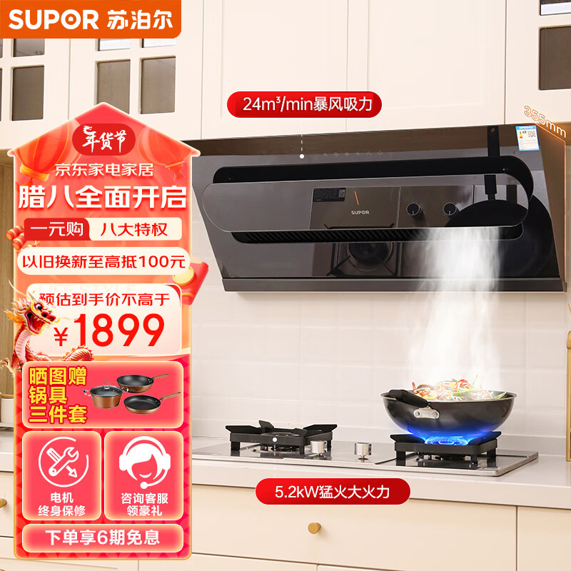 苏泊尔(SUPOR)抽油烟机 24m3/min大吸力 变频侧吸式脱排抽吸油烟机家用 挥手智控免拆洗烟灶套装 DJ50S+DS37天价格:1899.00元!