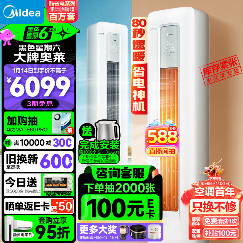 美的(Midea)空调 3匹 酷省电 新一级能效 变频冷暖 空调立式 客厅空调柜机 KFR-72LW/N8KS1-1价格:6099.00元!