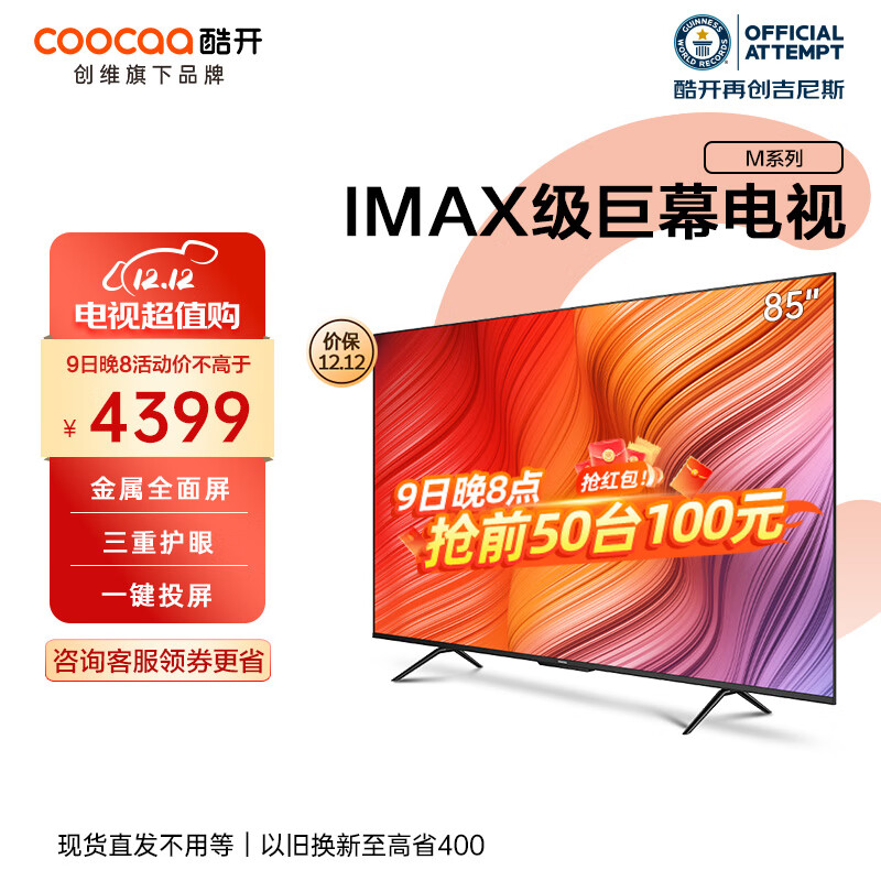 酷开(coocaa)创维电视M85 85英寸游戏电视 120HZ高刷 HDMI2.1 4K超高清 3+32GB 智慧屏 客厅电视 85P31价格:4699.00元!