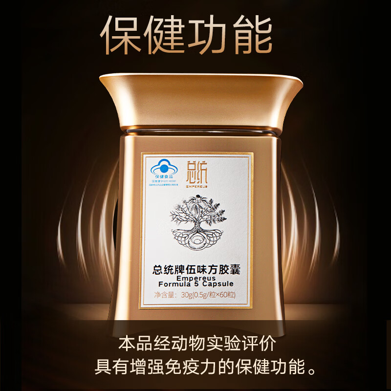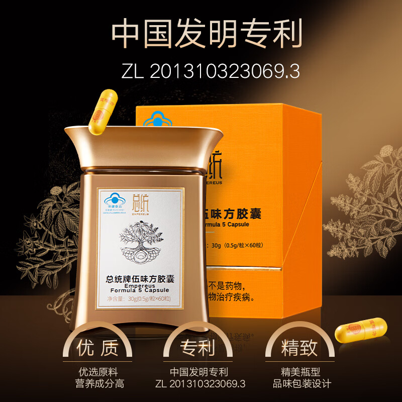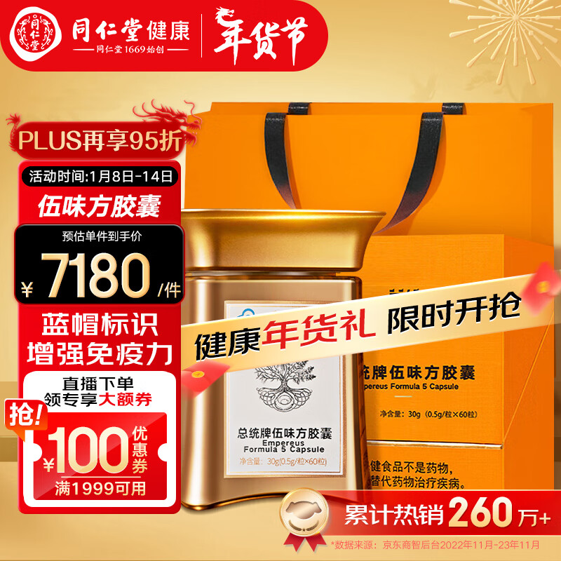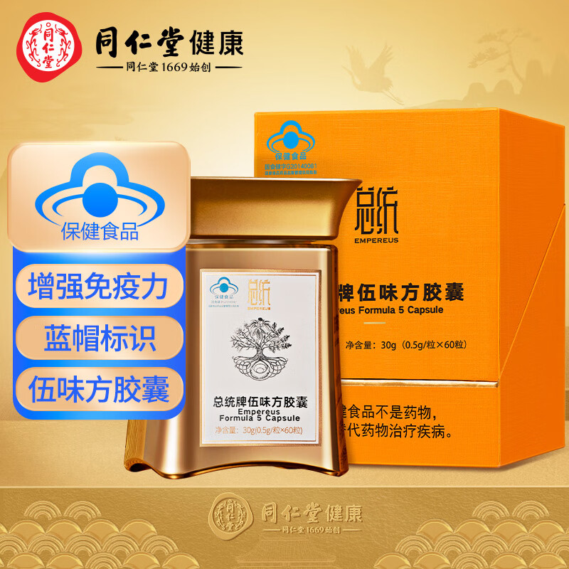 同仁堂 总统牌 伍味方胶囊30g(500mg*60粒) 增强免疫力 伍味方含冬虫夏草铁皮石斛价格:7180.00元!