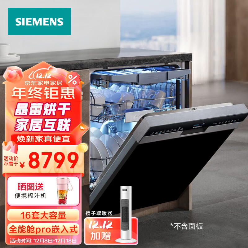 西门子(SIEMENS)16套大容量 全能舱pro嵌入式洗碗机 家居互联晶蕾烘干烘存 SJ55ZS00MC 不含面板价格:8799.00元!