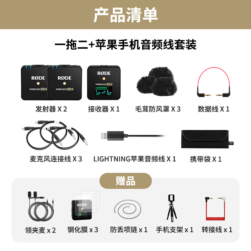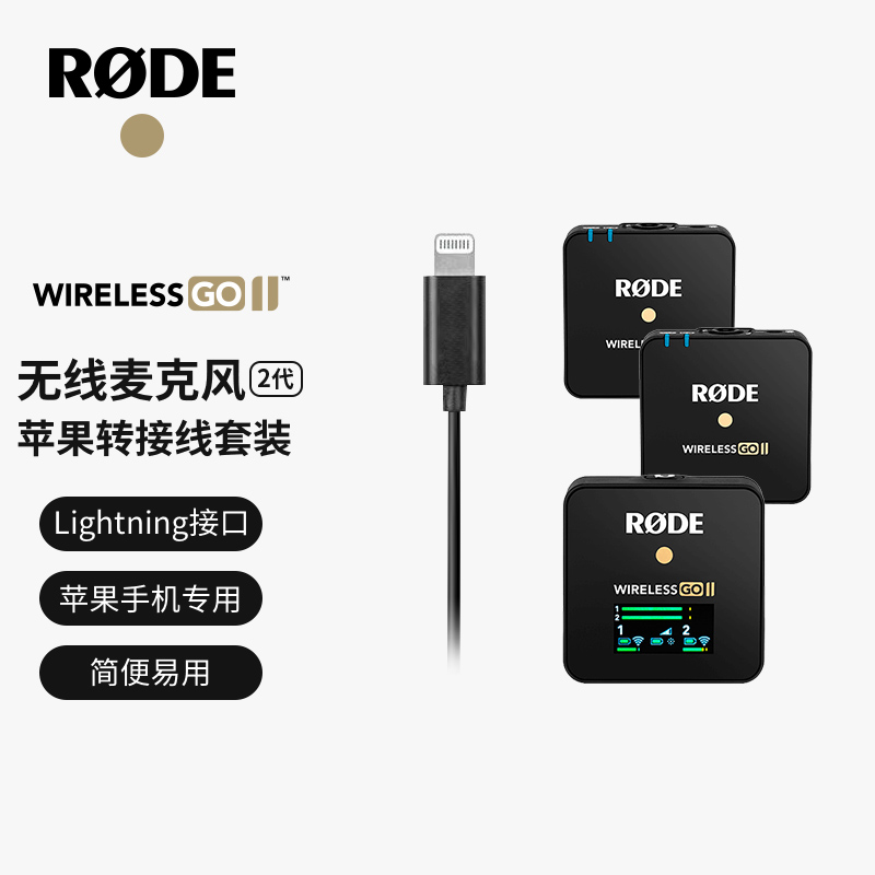 RODE罗德Wireless GO II 无线领夹麦克风一拖二直播录音采访视频VLOG小蜜蜂手机相机专业收音话筒+苹果线套装价格:2695.00元!