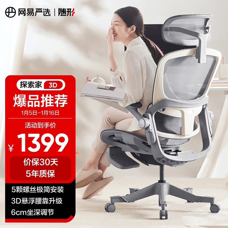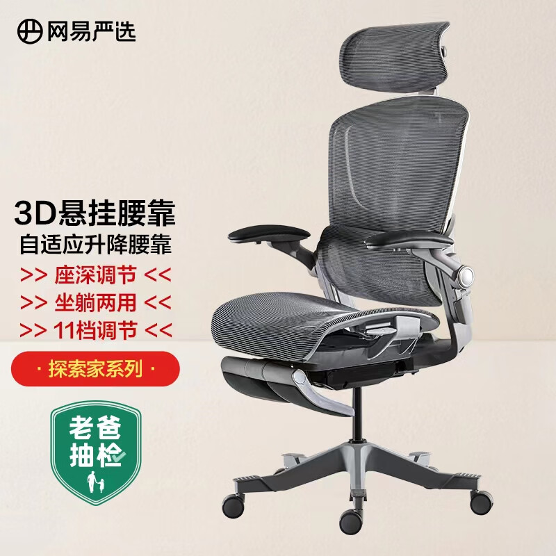 网易严选探索家经典款有搁脚 人体工学电脑椅办公电竞老板会议学习椅凳子价格:1899.00元!